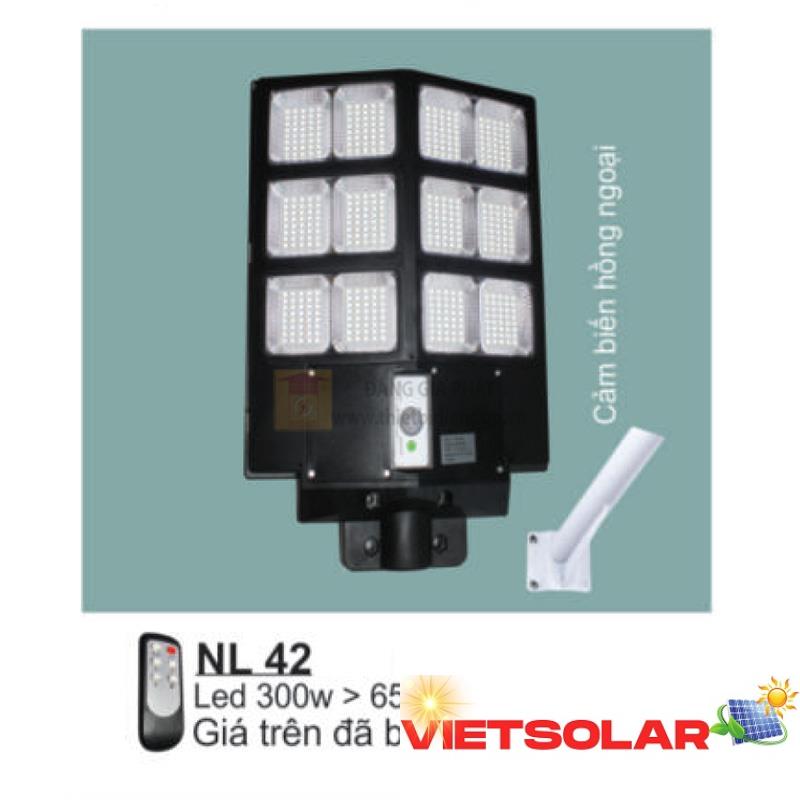 Đèn đường năng lượng Led 300W > 6500K, cảm biến hồng ngoại NL 42
