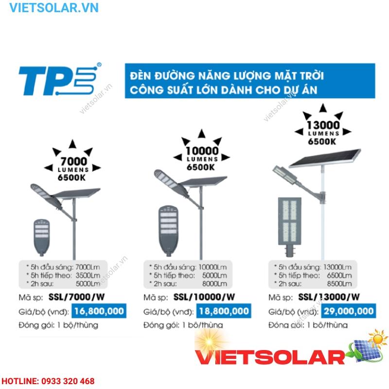 Mã sản phẩm: Đèn đường năng lượng mặt trời cao cấp 13000 Lumen Tiến PhátPhân phối bởi: Việt Solar, Bảo hành: 1 năm – 3 năm; Thương hiệu: DSY, Navigate, Esnco, Rạng Đông, MPE, Hufa, 355 DECOR, Anfaco, Điện Quang, Euroto, Nanoco, Paragon, Sano, Tiến Phát; Kiểu đèn: Đèn pha năng lượng mặt trời, Đèn đường năng lượng mặt trời | Đèn bulb năng lượng mặt trời | Đèn cắm cỏ năng lượng mặt trời | Đèn chiếu cảnh quan năng lượng mặt trời | Đèn trụ cổng năng lượng mặt trời | Đèn trụ sân vườn năng lượng mặt trời | Đèn tường năng lượng mặt trời | Đèn lối đi năng lượng mặt trời