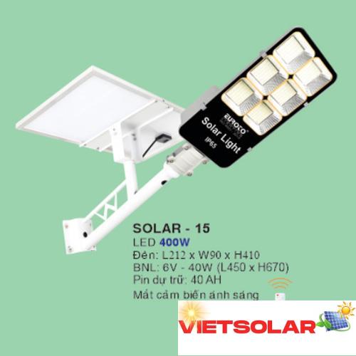 Đèn Đường NLMT 400W – L212*W90*H410, Tấm Pin: 6V-40W (L450*H670) SOLAR-15