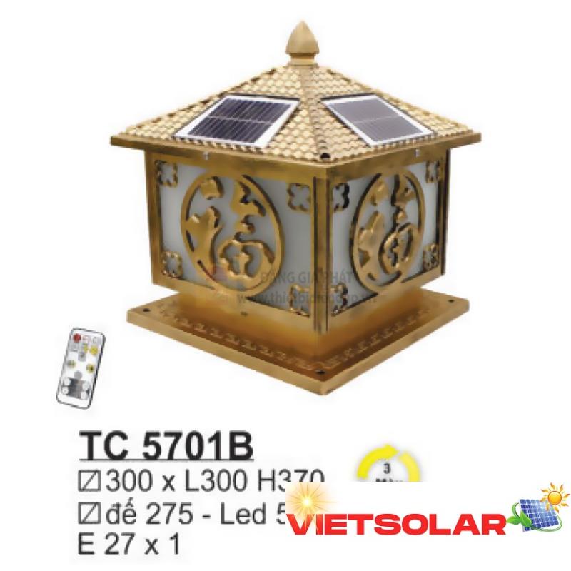 Đèn trụ cổng năng lượng E27*1 – Ø300*L300*H370 – Đế Ø275 – Led 5W 3 màu – vỏ màu gold TC 5701B