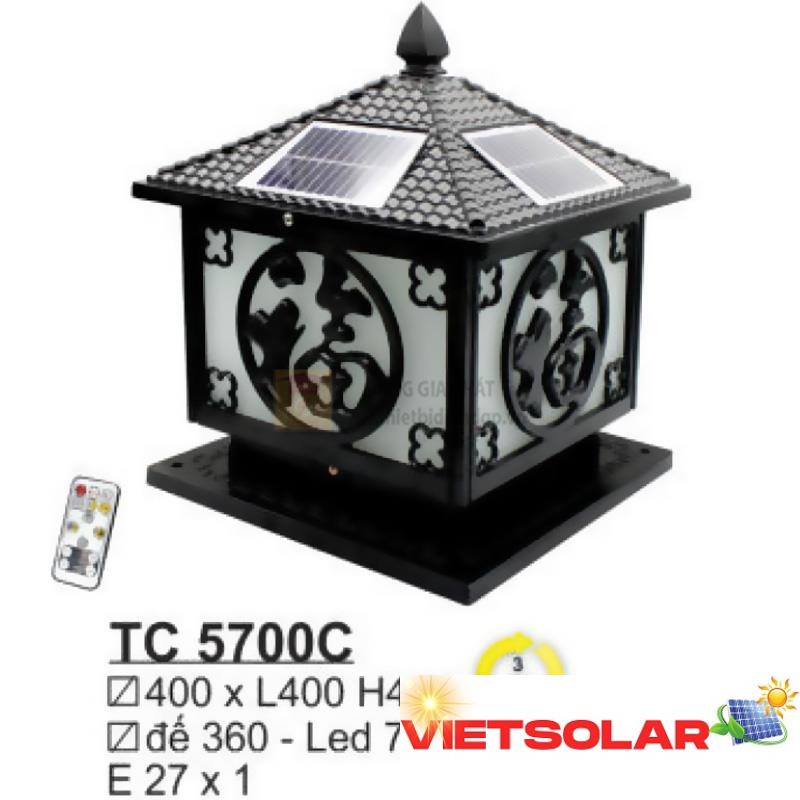 Đèn trụ cổng năng lượng E27*1 – Ø400*L400*H450 – Đế Ø360 – Led 7W 3 màu – vỏ màu đen TC 5700C