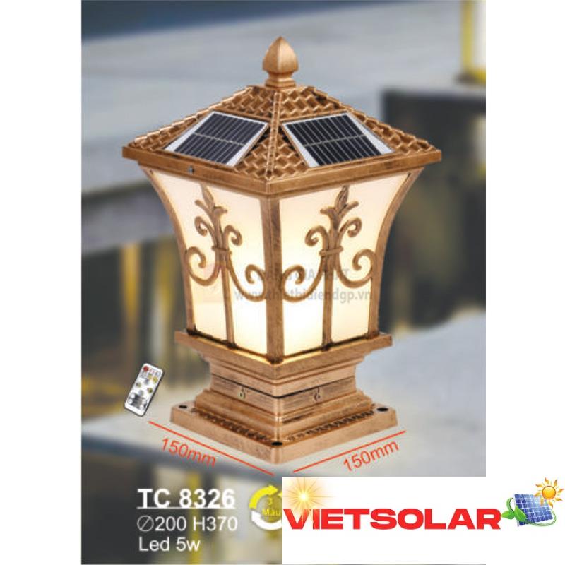 Đèn trụ cổng năng lượng mặt trời Led 5W – Ø200*H370 – 3 màu ánh sáng – vỏ màu gold TC 8326