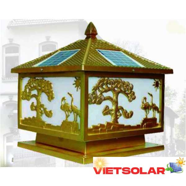 Đèn trụ cổng năng lượng mặt trời led 9W+E27, L400*W400*H450, ánh sáng trắng, vỏ vàng TC 7327C : Đế Ø360