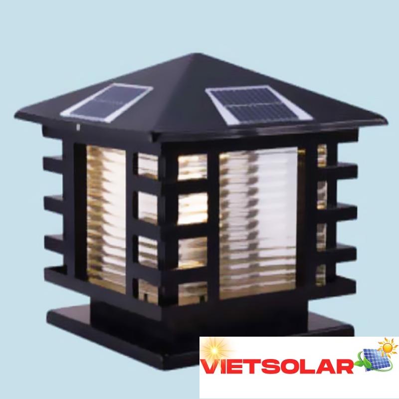 Đèn trụ cổng năng lượng mặt trời vuông E27-Led 3W, ánh sáng vàng TNL-11 : Mái: Ø250, Đế: Ø250*H270