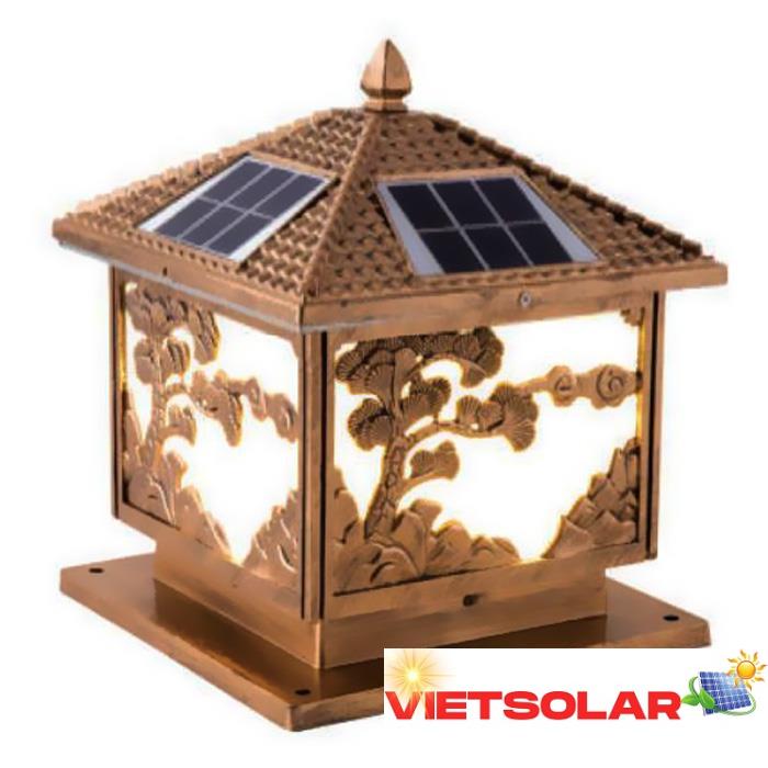 Đèn trụ cổng năng lượng mặt trời vuông E27-Led 4W, ánh sáng vàng TNL-05 : Mái: Ø300, Đế: Ø300*H370