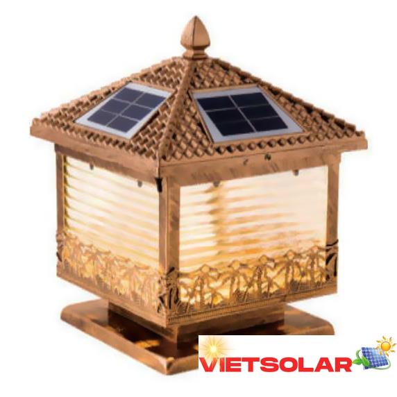 Đèn trụ cổng năng lượng mặt trời vuông E27-Led 5W, ánh sáng vàng TNL-03 : Mái: Ø400, Đế: Ø360*H360