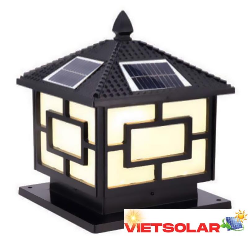 Đèn trụ cổng năng lượng mặt trời vuông E27-Led 5W, ánh sáng vàng TNL-09 : Mái: Ø400, Đế: Ø400*H450